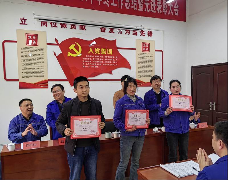 公司副總經理趙永強宣讀了《關于兌現(xiàn)2024年度安全承包獎的決定》、《關于表彰2024年度先進班組和先進個人的決定》,對2024年年度工作中作出突出貢獻的炭材運行三班先進班組、柴彬等8名先進個人予以表彰,并頒發(fā)了先進集體獎等四項集體獎牌以示鼓勵。